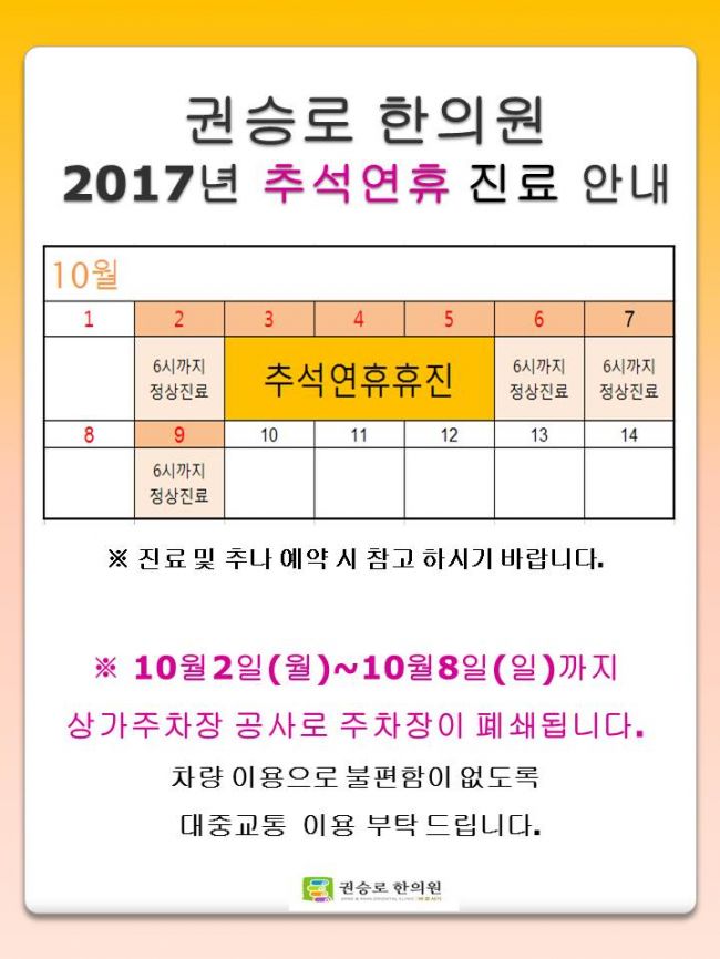 2017년 추석연휴 진료 안내