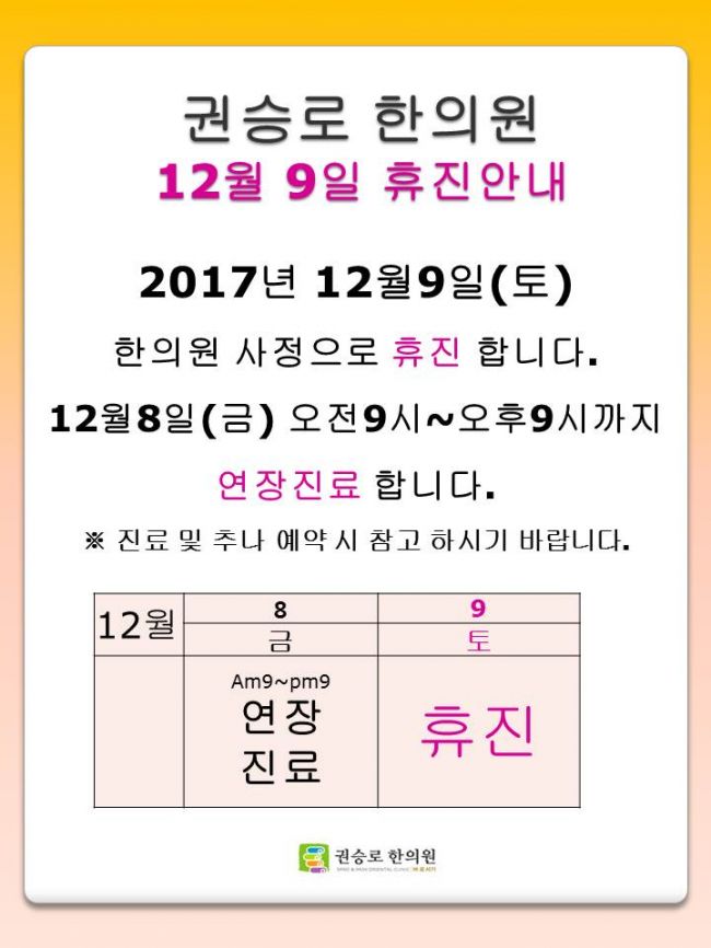 2017년12월9일(토) 휴진 안내