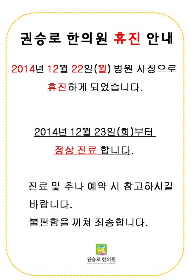 2014년12월22일(월) 휴진안내