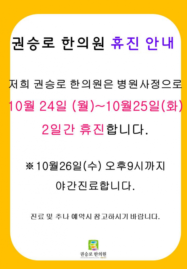 2016년10월24(월)~10.25(화) 진료휴진 안내